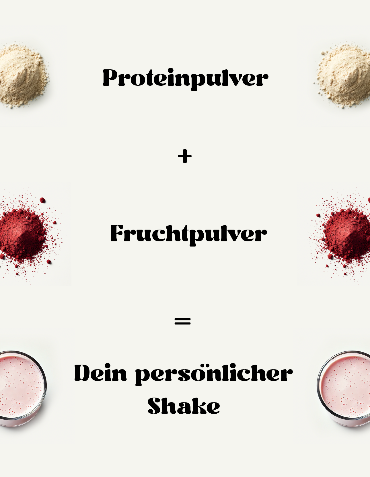 Wähle unser veganes Proteinpulver und ergänze es mit deinen Lieblingsfruchtsorten