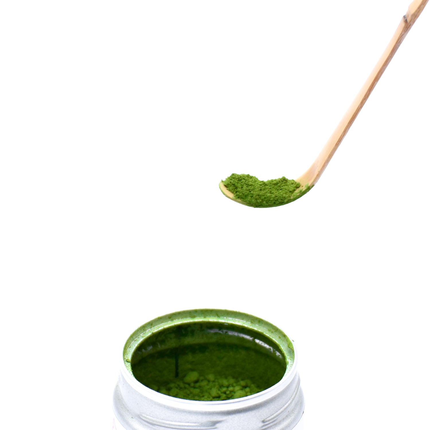 - Matcha-Tee: Gib 1-2 Gramm Bio Matcha-Pulver in die Matcha-Schale (Chawan).